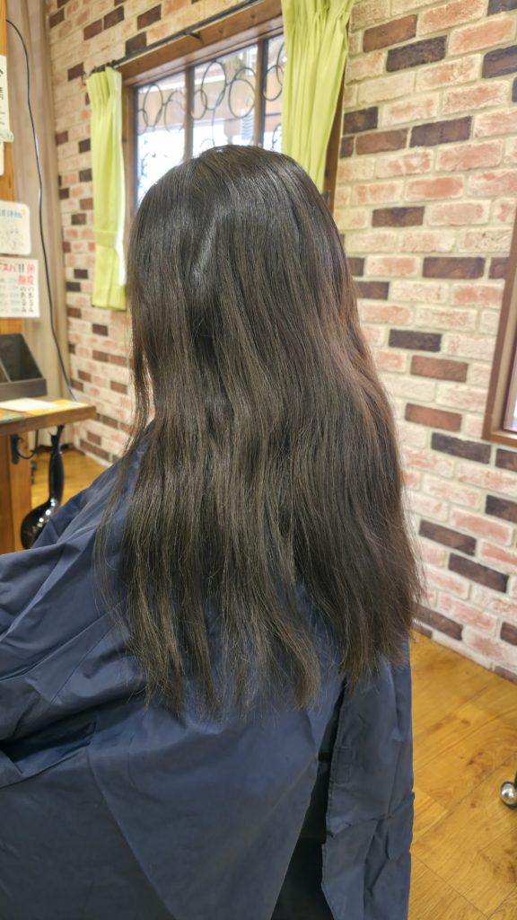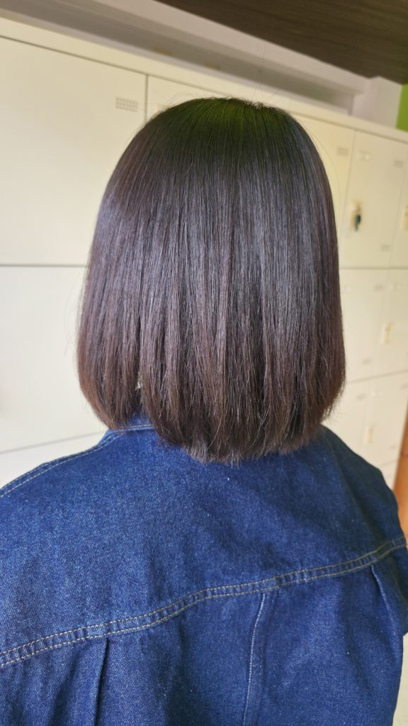 長さを切るだけでも印象は変わりますが、ストレートパーマを組み合わせることで、ツヤ感と扱いやすさがぐっとアップ。